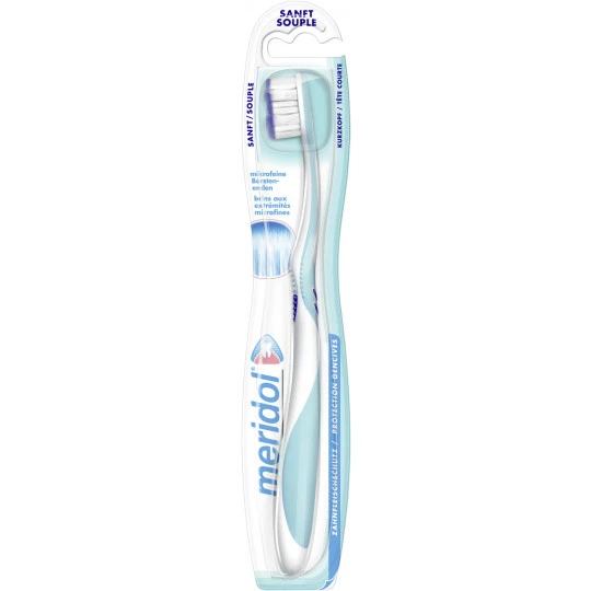 Die meridol Zahnfleisch sanft Zahnbürste reinigt die Zähne bis hin zum Zahnfleischsaum besonders gründlich und schont dabei sogar bereits gereiztes Zahnfleisch. Die schonende Putzkraft der meridol Zahnfleisch sanft Zahnbürste unterstützt Sie dabei, unangenehme Zahnfleischentzündungen zu vermeiden. Das besondere Plus: Durch ihren extra-kleinen Bürstenkopf erreichen Sie mit der meridol Zahnfleisch sanft Zahnbürste alle Zahnflächen optimal. So sorgen Sie dafür, dass sich keine zahnschädigenden Bakterien auf der Zahnoberfläche ansiedeln, und beugen Zahnfleischproblemen und Karies vor. Die meridol Zahnfleisch sanft Zahnbürste punktet mit pinselartigen, mikrofeinen Borstenenden, die Speisereste und Plaque gründlich von der Oberfläche der Zähne bis hin zum Zahnfleischsaum entfernen. Der kleine Bürstenkopf der meridol Zahnfleisch sanft Zahnbürste ist weich ummantelt, damit Sie problemlos auch in die hintersten Ecken Ihres Mundraums gelangen, ohne wundes Zahnfleisch weiter zu reizen. Der ergonomisch geformte Griff liegt bestens in der Hand, sodass sich die meridol Zahnfleisch sanft Zahnbürste wunderbar führen lässt.